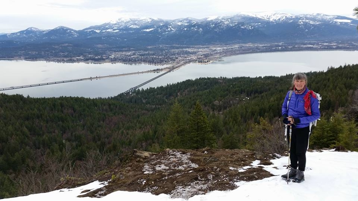 Use caution and stay left as you pass by new junctions after a little more than 2 miles. The steady climb through mixed conifer woods continues. As the ridge ascends more steeply, a few more switchbacks bring you to dry slope Ponderosa Pines and the first of two openings, each with benches and views. The city of Sandpoint are to the north, with the Selkirk Mountain rising just beyond. To the west, Lake Pend d’Oreille flows out through a gap in the gently declining Selkirk mountains. If you carry a headlamp, you might enjoy sunset before heading back down.