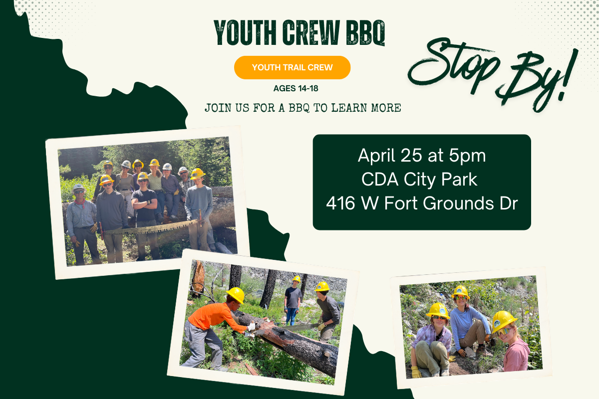 Youth Crew BBQ Join Idaho Trails Association for a laid-back Youth BBQ at Coeur d’Alene Park—right by the volleyball net off Rosenberry Dr! We’ll have hot dogs on the grill, a volleyball game going, and plenty of space to just hang out and enjoy a summer day outside. Come ... Read More